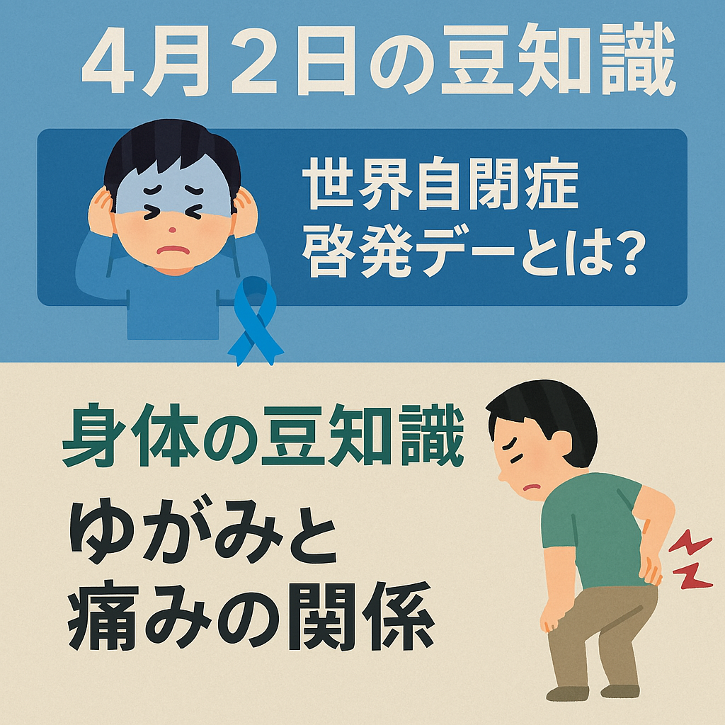今日のテーマは 「世界自閉症啓発デー」と「体のゆがみ」 でした。どちらも 「無意識のうちに影響を受けるもの」 という共通点があります。