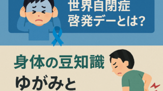 豆知識 4月2日の豆知識:世界自閉症啓発デーとは? 4月2日は「世界自閉症啓発デー」。自閉症と感覚過敏の関係、そして日常生活での身体のゆがみが痛みにどう影響するのかを解説!読谷村のかりゆし接骨院が豆知識をお届け。 2025.04.02 豆知識